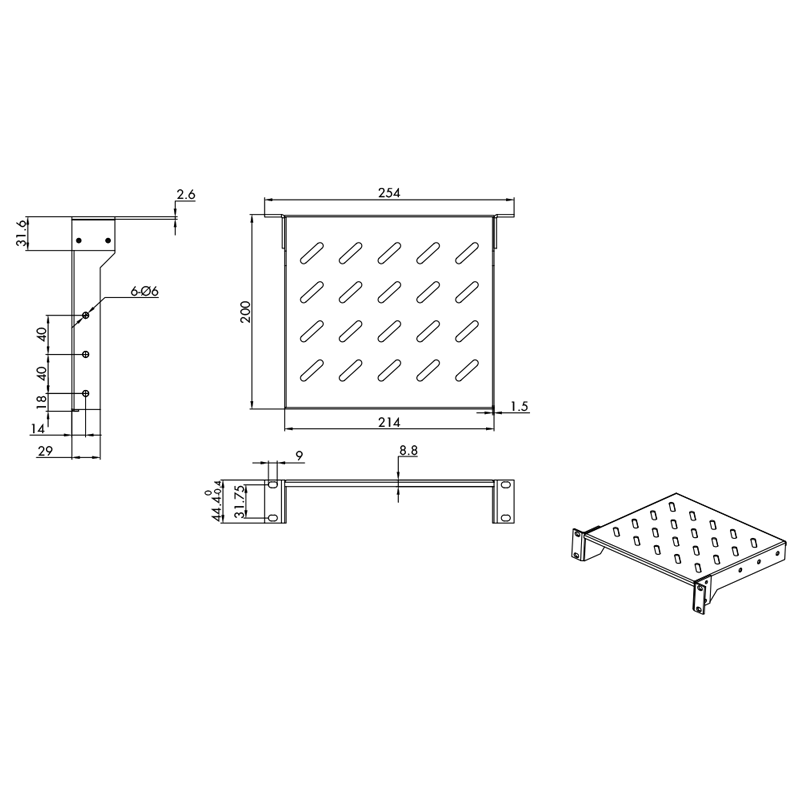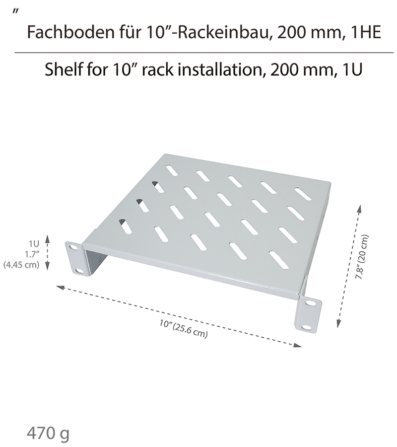 Cantilever shelf for 10" rackmount, 200 mm, 1U, grey