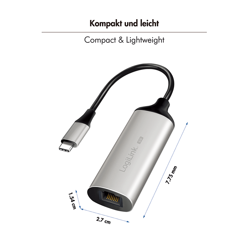 USB-C/M 3.2 Gen 1 to RJ45/F 5G Gigabit Ethernet Adapter, Full Duplex Flow Control, aluminum